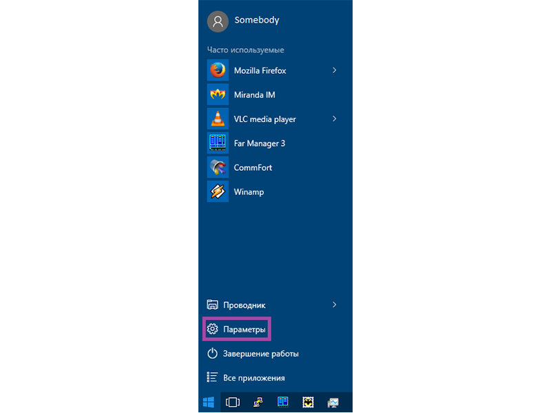 Натискаємо кнопку Пуск -> Параметры.