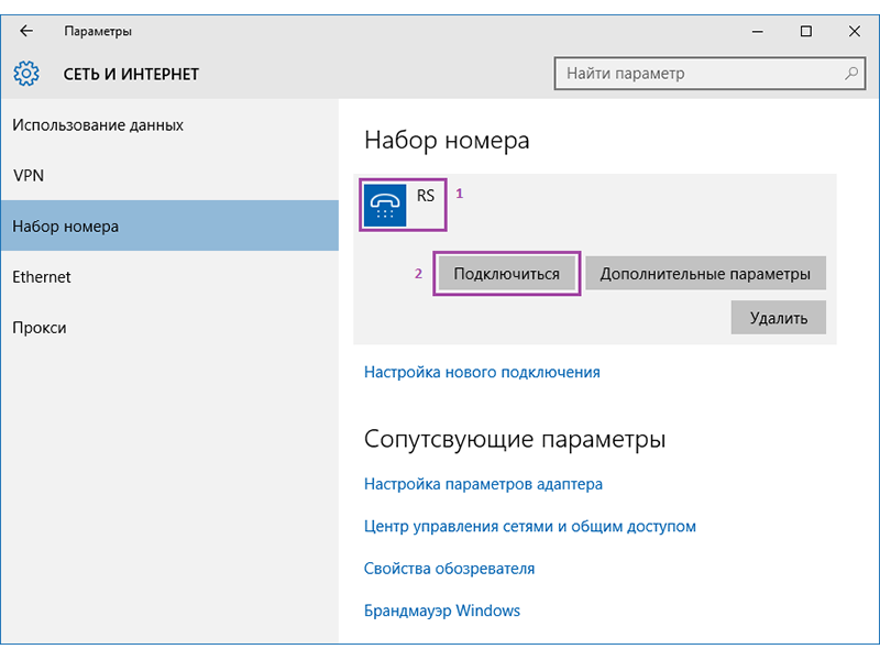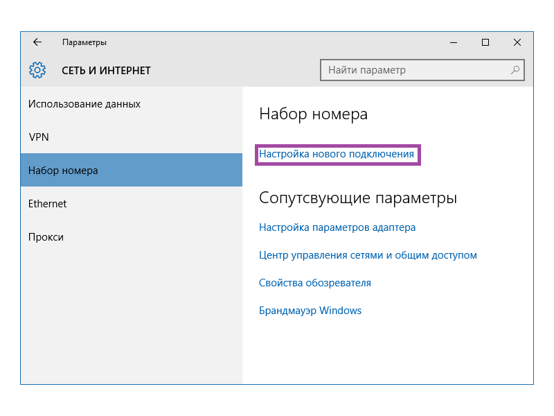 У розділі Набор номера слід натиснути Настройка нового подключения.