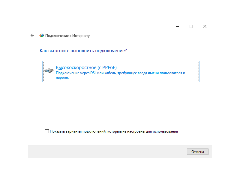 У типі мережевого підключення обираєм — Высокоскоростное (с PPPoE).