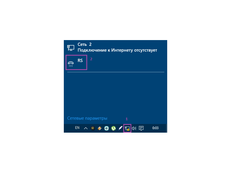 Натискаємо піктограму з написом RS (позначка 1), потім Подключиться (позначка 2).